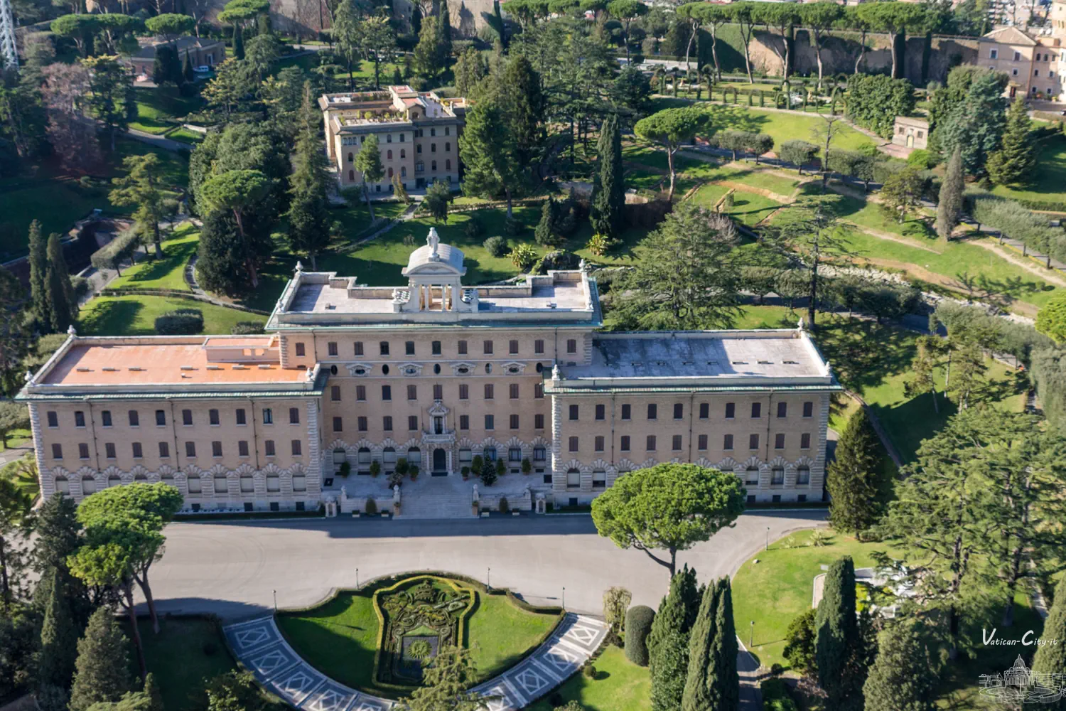 Lourdesgrot In 1902 schonk de bisschop van Tarbes paus Leo XIII een levensgrote replica van de grot van Lourdes, waar de Maagd Maria in 1858 verscheen aan de jonge Bernadette Soubirous. De grot, ontworpen door architect Costantino Sneider en gerealiseerd via een internationale inzamelingsactie van de Missionarissen van de Onbevlekte Ontvangenis, herbergt een beeld van Onze-Lieve-Vrouw van Lourdes en het originele marmeren altaar uit de Franse grot, geschonken aan paus Johannes XXIII bij het honderdjarig jubileum van de eerste verschijning. Aan het einde van een pad omzoomd door planten met symbolische verwijzingen naar bijbelse teksten blijft de grot een afgelegen plek voor gebed en bezinning.